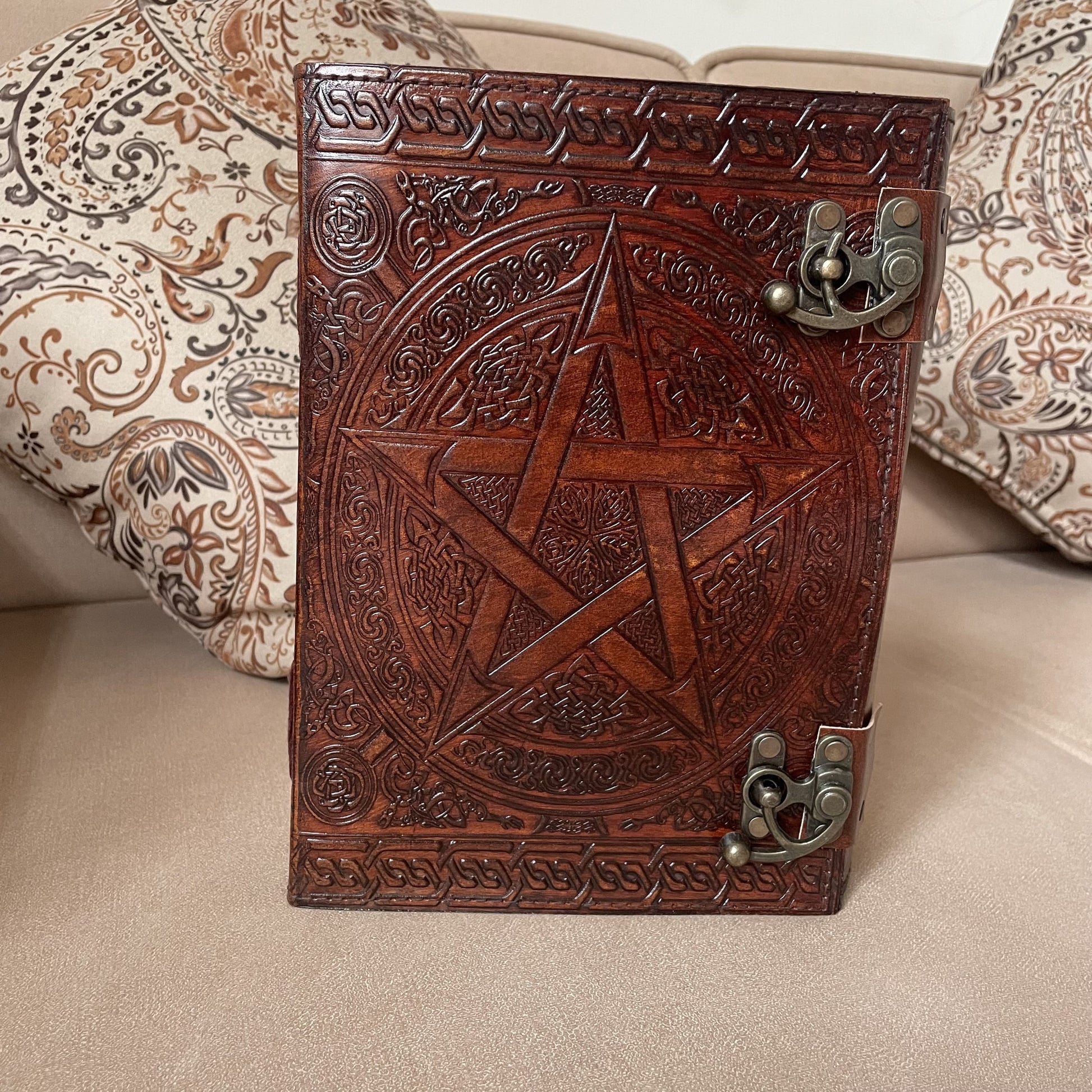 Pentagram Embossed Leather Journal, Large Notebook With Lined/Unlined Pages